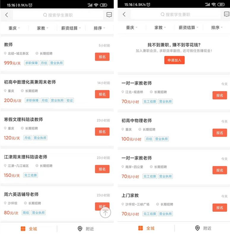 做家教还需要考虑的问题就是地域问题,如果兼职的地方距离自己太远的话,相信很多人也不会去的。所以同城类的App或者网站就可以帮助你了。