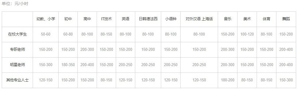 而对于一些有技术性的科目,辅导价格就会相对高一些,比如舞蹈、IT技术等科目,价格大概在150~200元/小时。