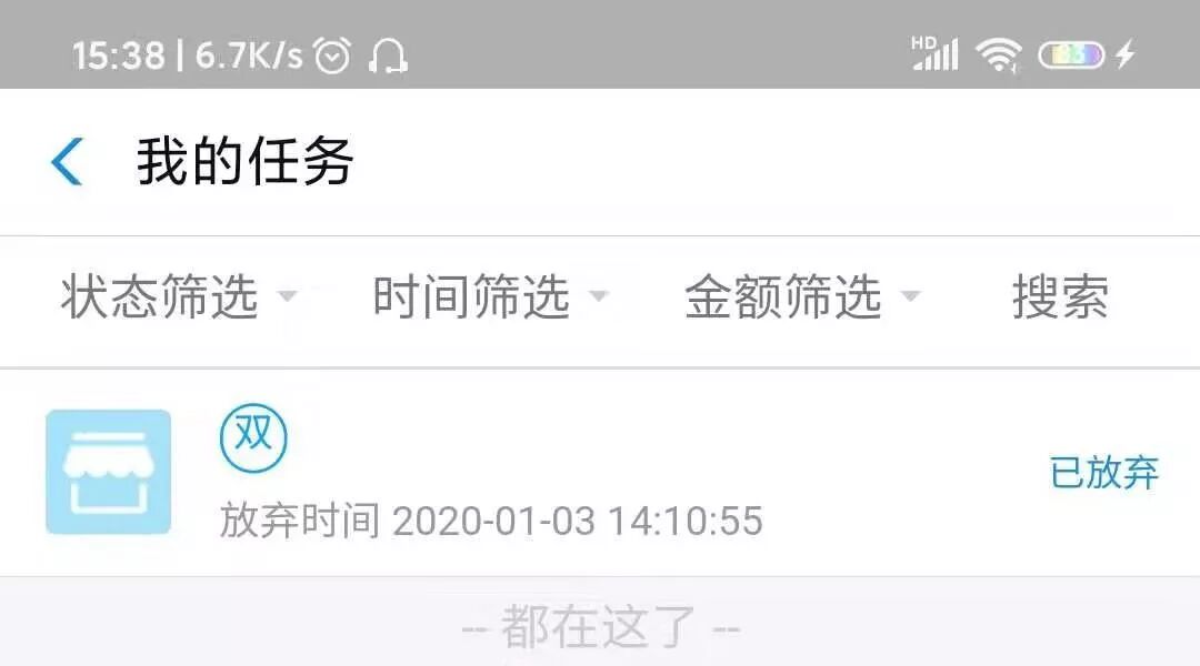 如果你不想领取该任务了,也可以在任务的详情界面点击“放弃”按钮进行取消任务,(关注公众号:阿普说创业,每天更新更多最新赚钱干货,发放超值资源福利,365天从不间断!)不过大家不要太过频繁地取消任务,因为这样的操作可能会对你的信用积分造成影响。