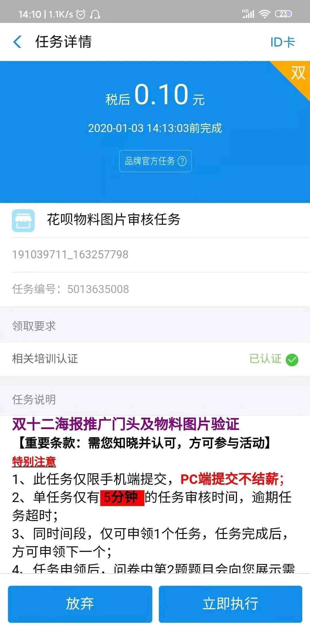 做这个任务前,你要完成平台给你的认证考试,只有通过了才可以接单完成任务。