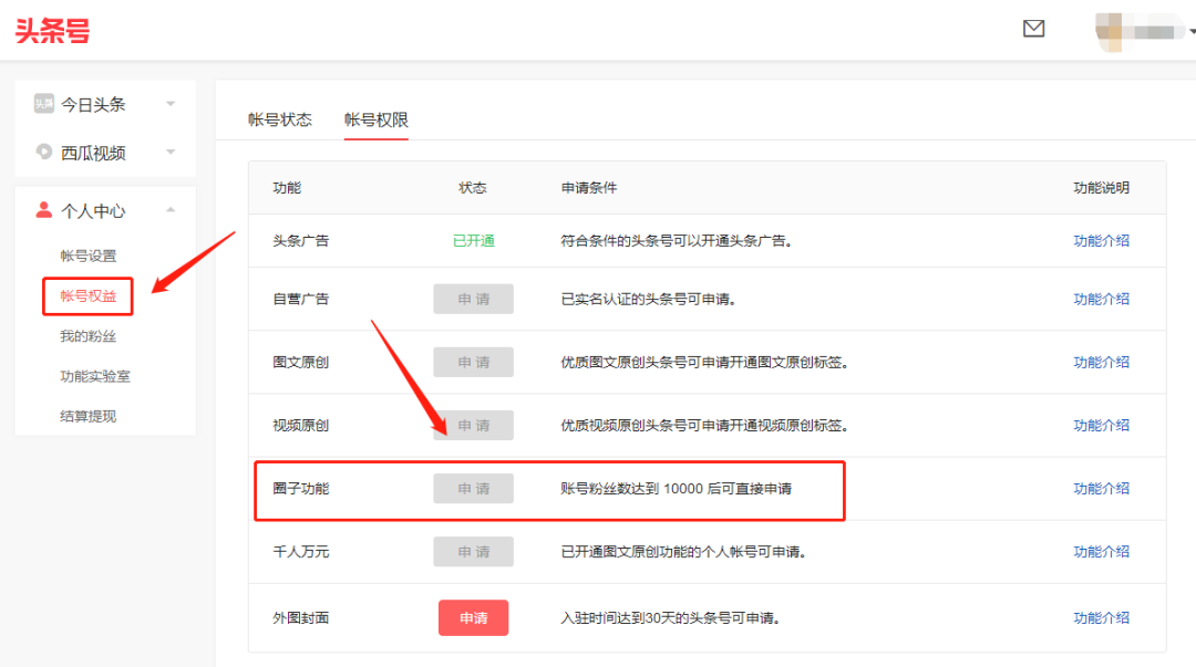 但开通今日头条得圈子功能,也需要满足一些条件才行: